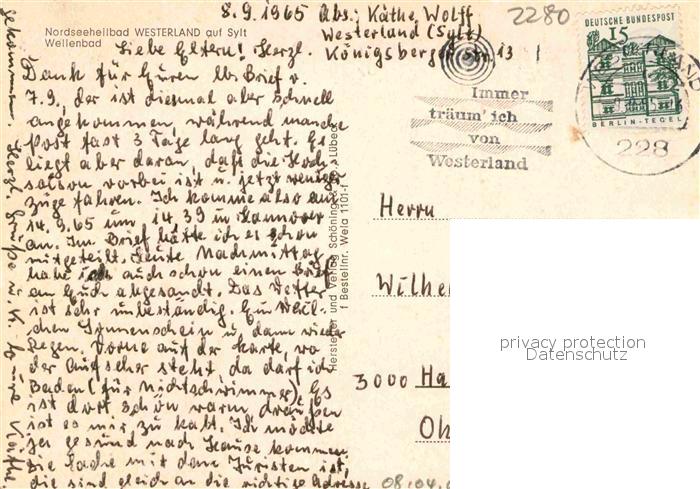 72901027 alte Postkarte Westerland Sylt Wellenbad postalisch gelaufen Erhaltung siehe scans [WerneD78] KatCode: 11110001054151