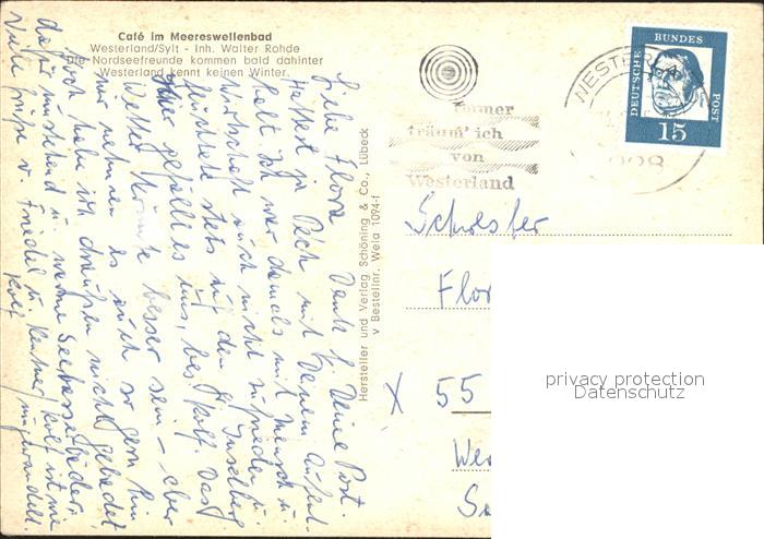 72062781 alte Postkarte Westerland Sylt Wellenbad Cafe postalisch gelaufen Erhaltung siehe scans KatCode: 11110001054151