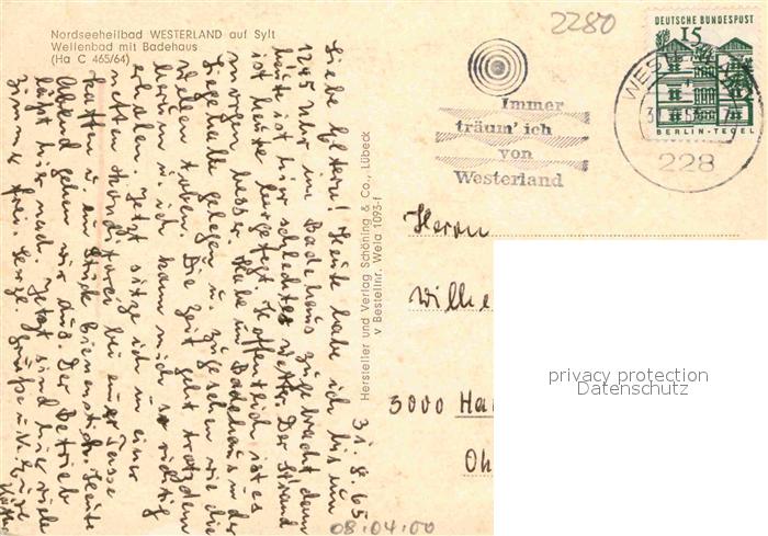 72901023 alte Postkarte Westerland Sylt Wellenbad mit Badehaus postalisch gelaufen Erhaltung siehe scans [WerneD78] KatCode: 11110001054151