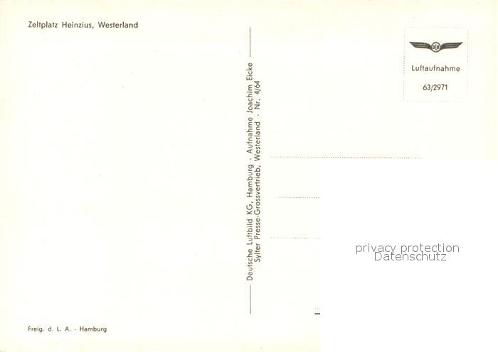73600018 Westerland Sylt Zeltplatz Heinzius Nordseeheilbad Fliegeraufnahme postalisch nicht gelaufen Erhaltung siehe scans [FriedD77] KatCode: 11110001054151