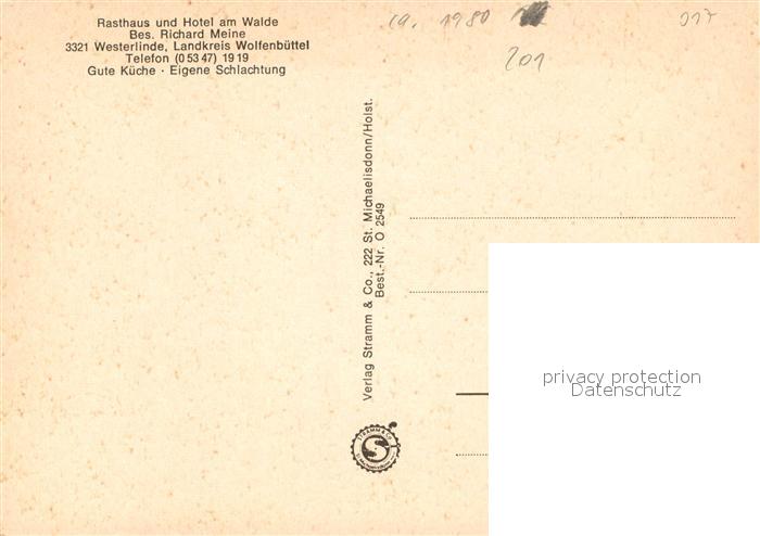 73569892 Westerlinde Rasthaus Hotel am Walde Gastraeume postalisch nicht gelaufen Erhaltung siehe scans [WerneD78] KatCode: 11110003158004