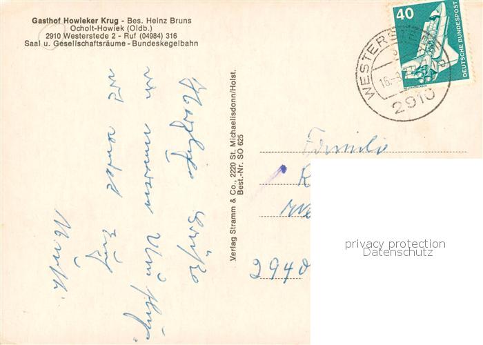 73843662 alte Postkarte Westerstede Gasthof Howleker Krug Gastraeume Huette postalisch gelaufen Erhaltung siehe scans [WerneD78] KatCode: 11110003451007