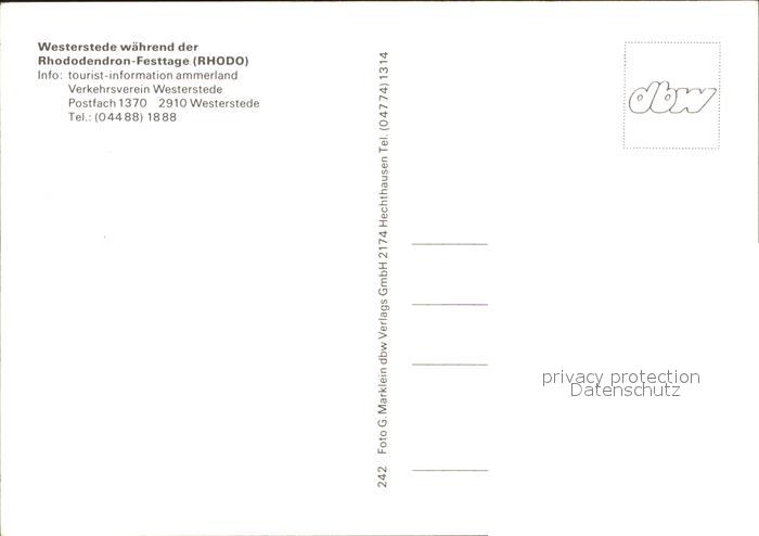 72113180 Westerstede Rhododendron Festtage postalisch nicht gelaufen Erhaltung siehe scans KatCode: 11110003451007