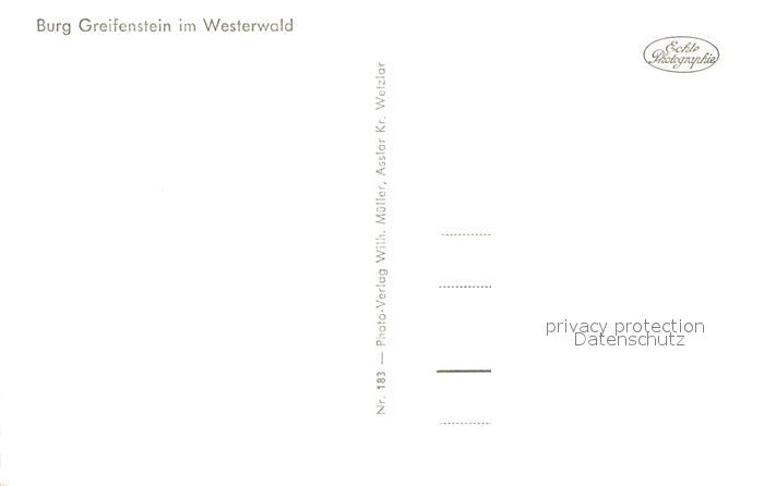73000742 Westerwald Region Burg Greifenstein postalisch nicht gelaufen Erhaltung siehe scans [KathaD81] KatCode: 11110007143206