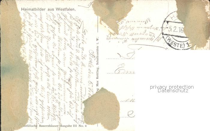 71861772 alte Postkarte Westfalen Region Westfaelische Bauernhaeuser Westfalengruss Serie Heimatbilder Ausgabe III No. 4 postalisch gelaufen Erhaltung siehe scans KatCode: 11110003459024