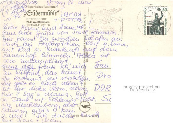 73680828 alte Postkarte Westfehmarn Restaurant Suedermuehle postalisch gelaufen Erhaltung siehe scans [LiesaD40] KatCode: 11110001055046