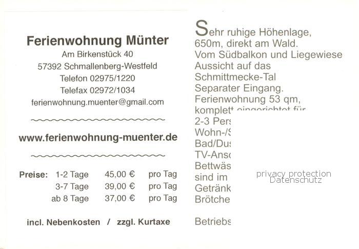 73758547 Westfeld Sauerland Ferienwohnung Muenter postalisch nicht gelaufen Werbekarte (keine Postkarte) Erhaltung siehe scans [FriedD77] KatCode: 11110005958040