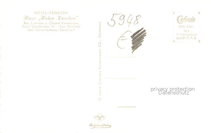 73560302 Westfeld Sauerland Hotel Pension Haus Hoher Knochen postalisch nicht gelaufen Erhaltung siehe scans [KathaD81] KatCode: 11110005958040