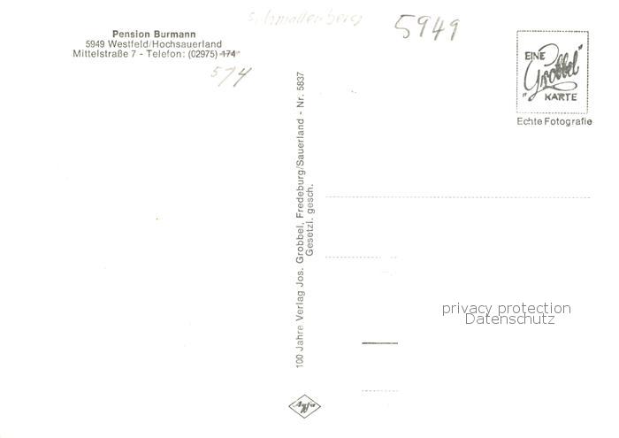 73852560 Westfeld Sauerland Pension Burmann postalisch nicht gelaufen Erhaltung siehe scans [WerneD78] KatCode: 11110005958040