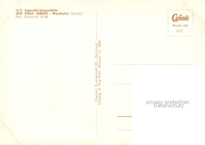73319876 Westhofen Westfalen Jugendbildungsstaette Haus Ebberg Fliegeraufnahme postalisch nicht gelaufen Erhaltung siehe scans [FriedD77] KatCode: 11110005978028