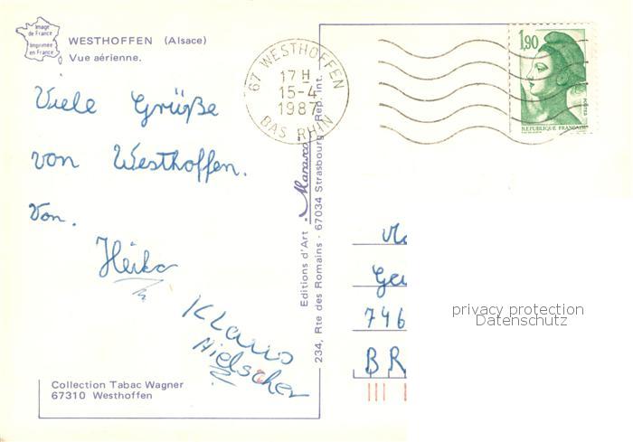 13767680 Westhoffen Vue aerienne postalisch gelaufen Erhaltung siehe scans [WerneD78] carte postale Wern Katcode 11170067367525