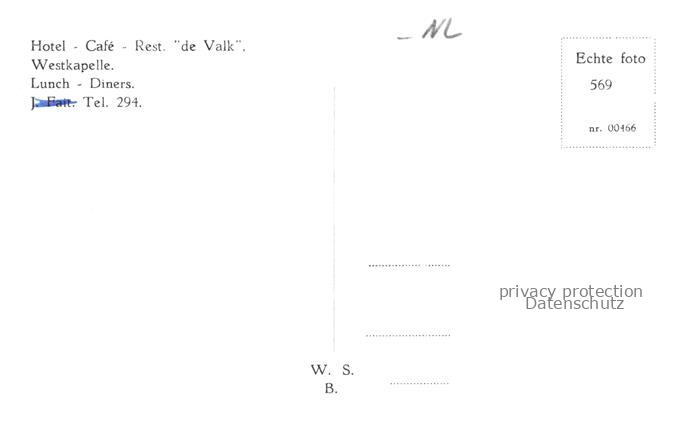 74020536 WESTKAPELLE Veere Zeeland NL Hotel Restaurant De Valk Gastraeume postalisch nicht gelaufen Erhaltung siehe scans [WerneD78] KatCode: 11371400