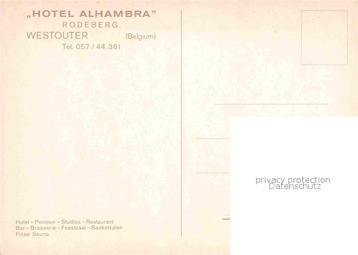 72677484 Westouter Hotel Alhambra Restaurant postalisch nicht gelaufen Erhaltung siehe scans [FriedD77] KatCode: 11070033000823