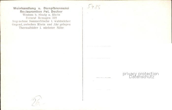 41586144 Westum Weinhandlung Dampfbrennerei Restauration Decker KatCode 11110007131077