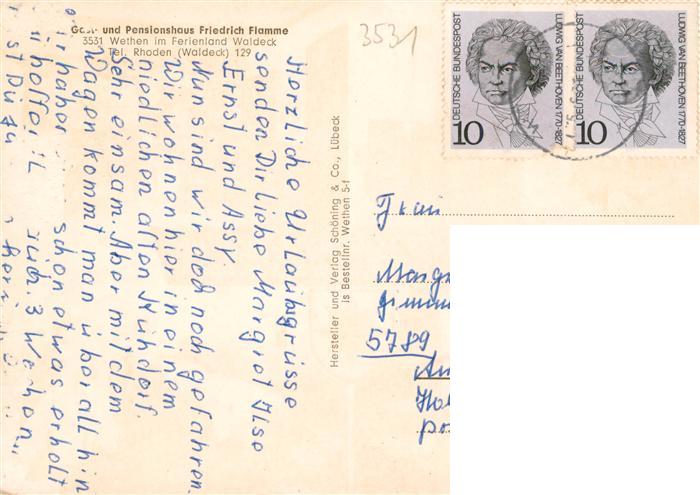73935084 alte Postkarte Wethen Gasthaus Pension Flamme Gastraeume postalisch gelaufen Erhaltung siehe scans [FriedD77] KatCode: 11110006635008