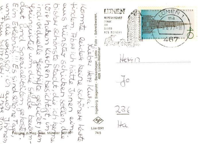 73878022 alte Postkarte Wethmar Luenen Fliegeraufnahme postalisch gelaufen Erhaltung siehe scans [FriedD77] KatCode: 11110005978024