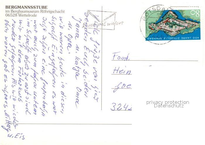 73022485 alte Postkarte Wettelrode Bergbaumuseum Roehrigschacht Bergmannsstube postalisch gelaufen Erhaltung siehe scans [WerneD78] KatCode: 11110015087370