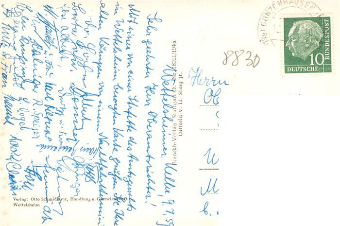 73970761 alte Postkarte Wettelsheim Mittelfranken Fliegeraufnahme postalisch gelaufen Erhaltung siehe scans [FriedD77] KatCode: 11110009577173