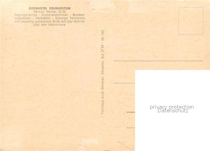 73646531 Wetter Ruhr Burghotel Volmarstein Terrasse Panorama Ruhrtal postalisch nicht gelaufen Erhaltung siehe scans [FriedD77] KatCode: 11110005954032