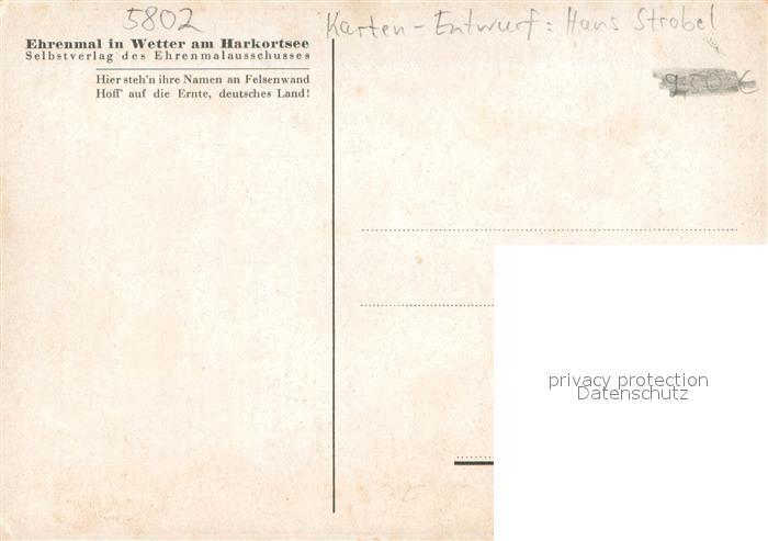 Wetter Ruhr Ehrenmal am Harkortsee Karten-Entwurf Hans Strobel