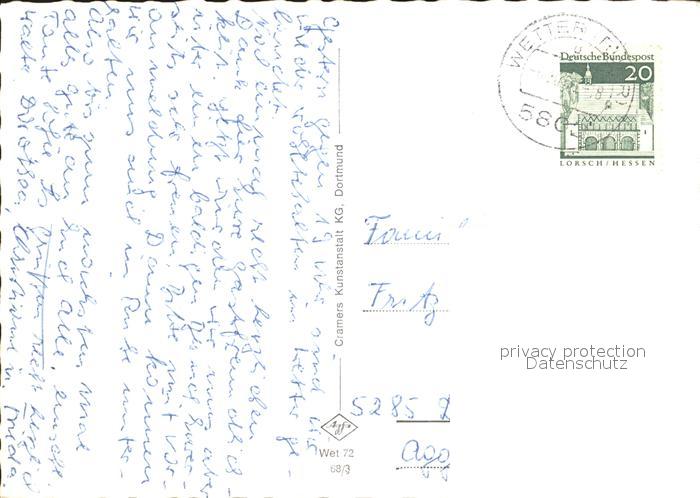72100259 alte Postkarte Wetter Ruhr Freiheit Fuenf-Giebel-Haeuser Ruhrbruecke postalisch gelaufen Erhaltung siehe scans KatCode: 11110005954032
