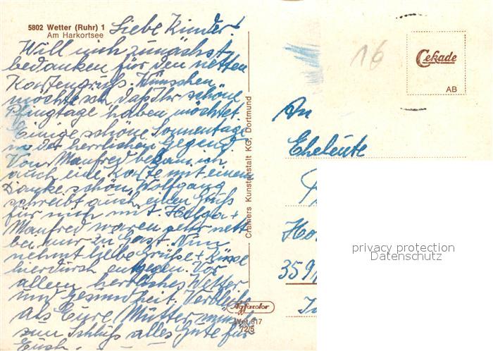 72989519 alte Postkarte Wetter Ruhr Harkortsee Segelbot Blick zum Schloss postalisch gelaufen Erhaltung siehe scans [FriedD77] KatCode: 11110005954032