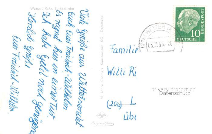 73812018 alte Postkarte Wetter Ruhr Lutherkirch postalisch gelaufen Erhaltung siehe scans [WerneD78] KatCode: 11110005954032