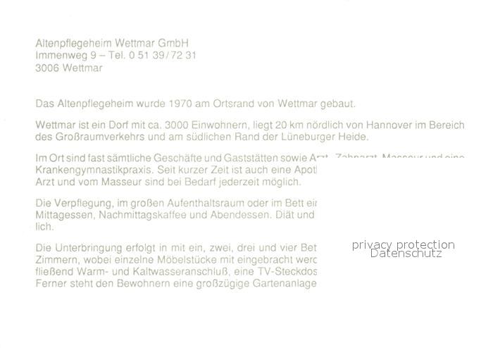 73543735 Wettmar Altenpflegeheim postalisch nicht gelaufen Werbekarte (keine Postkarte) Erhaltung siehe scans [FriedD77] KatCode: 11110003241004
