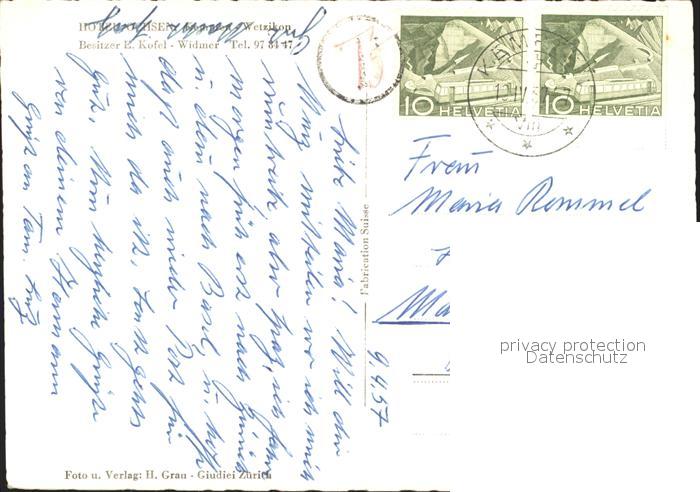 11655679 alte Postkarte Wetzikon ZH Hotel Ochsen Gastraum postalisch gelaufen Erhaltung siehe scans KatCode: 11470260885316