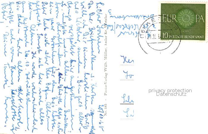 73335284 alte Postkarte Wetzlar Alte Lahnbruecke Goldfischteich Eisenmarkt Altstadt Fachwerkhaeuser Dom Lottehaus Stadtpanorama postalisch gelaufen Erhaltung siehe scans [FriedD77] KatCode: 11110006532023