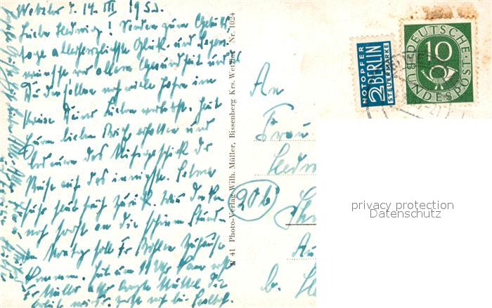 73332345 alte Postkarte Wetzlar Domtreppe Stadtblick Lottehaus Alte Lahnbruecke Kornmarkt postalisch gelaufen Erhaltung siehe scans [WerneD78] KatCode: 11110006532023