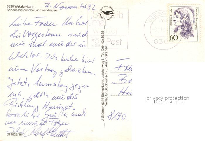 73173820 alte Postkarte Wetzlar Fachwerkhaeuser postalisch gelaufen Erhaltung siehe scans [PaolaD17] KatCode: 11110006532023