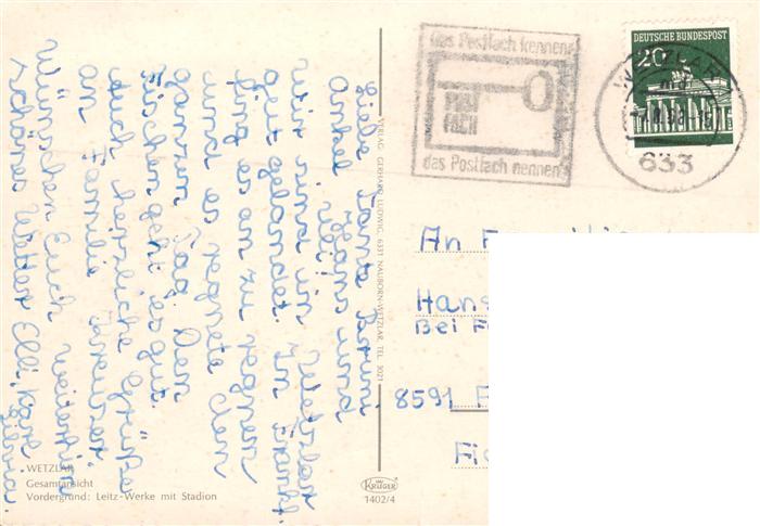 73903592 Wetzlar Lahn Fliegeraufnahme postalisch gelaufen Erhaltung siehe scans [FriedD77] alte Postkarte Frie Katcode 11110006532023