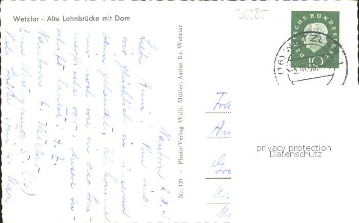 72034117 alte Postkarte WETZLAR Lahn Hessen Alte Lahnbruecke Dom postalisch gelaufen Erhaltung siehe scans KatCode: 11110006532023