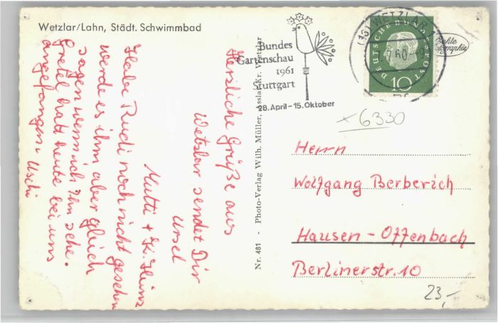 40692692 WETZLAR Lahn Hessen Bad postalisch gelaufen Alte Ansichtskarte Postkarte alte Postkarte Katcode 11110006532023