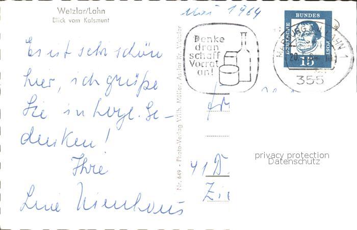 72202564 alte Postkarte WETZLAR Lahn Hessen Blick vom Kalsmunt postalisch gelaufen Erhaltung siehe scans KatCode: 11110006532023