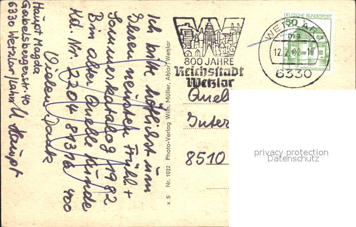 72539512 alte Postkarte WETZLAR Lahn Hessen Dom postalisch gelaufen Erhaltung siehe scans [LiesaD40 kt122box] KatCode: 11110006532023