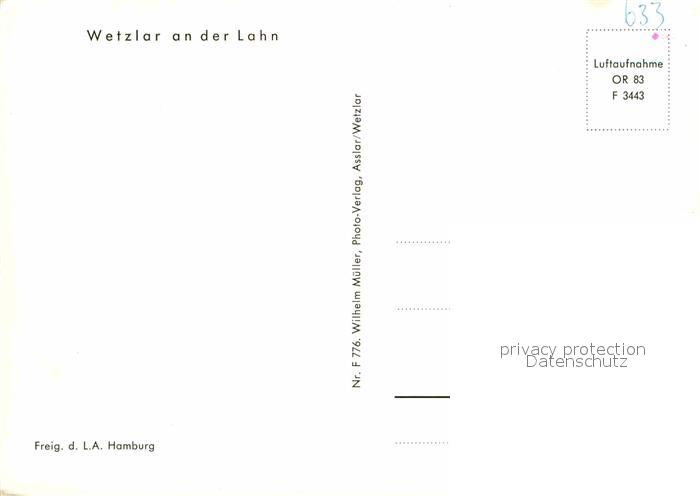 72724282 WETZLAR Lahn Hessen Dom Fliegeraufnahme postalisch nicht gelaufen Erhaltung siehe scans [FriedD77] KatCode: 11110006532023