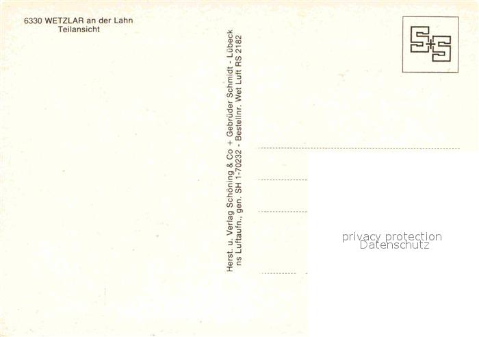 72895493 WETZLAR Lahn Hessen Fliegeraufnahme postalisch nicht gelaufen Erhaltung siehe scans [WerneD78] KatCode: 11110006532023