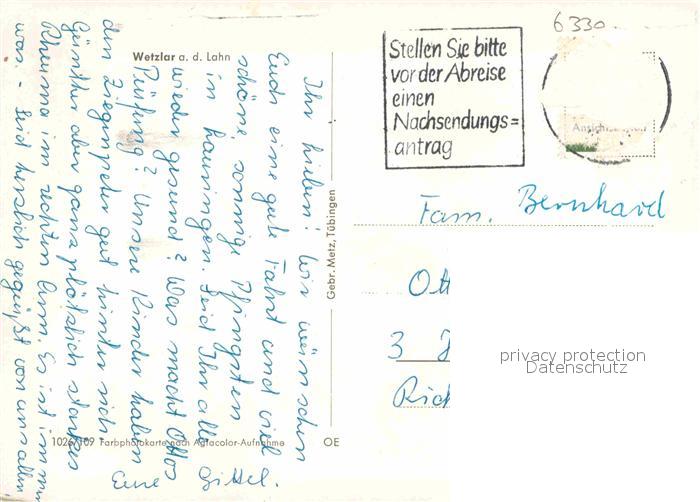 72895492 alte Postkarte WETZLAR Lahn Hessen Fliegeraufnahme postalisch gelaufen Erhaltung siehe scans [WerneD78] KatCode: 11110006532023