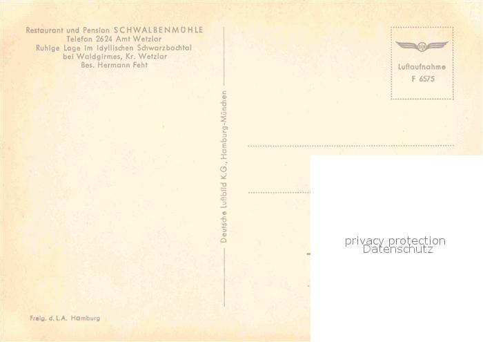 72772254 WETZLAR Lahn Hessen Fliegeraufnahme Restaurant Schwalbenmuehle postalisch nicht gelaufen Erhaltung siehe scans [AndreD76] KatCode: 11110006532023