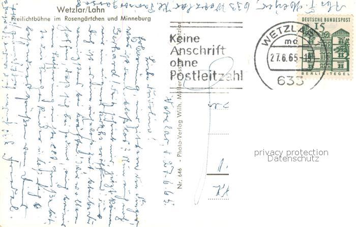 73722332 WETZLAR Lahn Hessen Freilichtbuehne im Rosengaertchen und Minneburg postalisch gelaufen Erhaltung siehe scans [WerneD78] alte Postkarte Wern Katcode 11110006532023