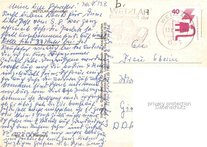 72665125 alte Postkarte WETZLAR Lahn Hessen Lahnstadt Fliegeraufnahme postalisch gelaufen Erhaltung siehe scans [WerneD78] KatCode: 11110006532023