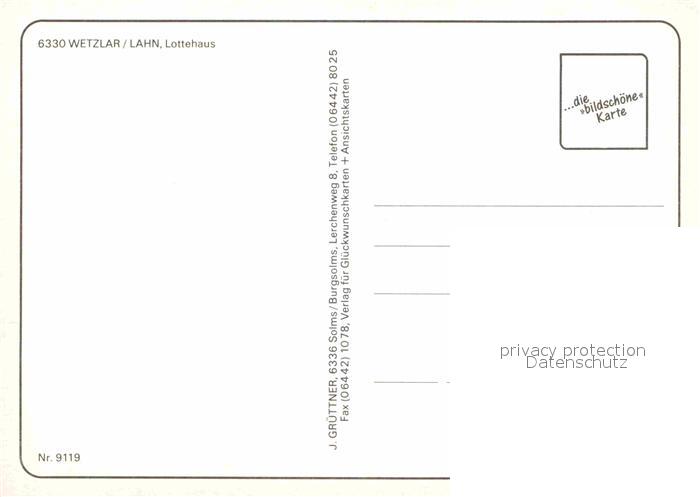 72793284 WETZLAR Lahn Hessen Lottehaus postalisch nicht gelaufen Erhaltung siehe scans [LiesaD40] KatCode: 11110006532023
