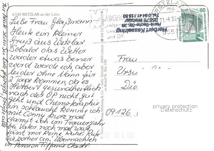 72617146 alte Postkarte WETZLAR Lahn Hessen Schillerplatz Lahnpartie Fischmarkt Reichskammergericht Hauptwache Staedt Museum postalisch gelaufen Erhaltung siehe scans [WerneD78] KatCode: 11110006532023