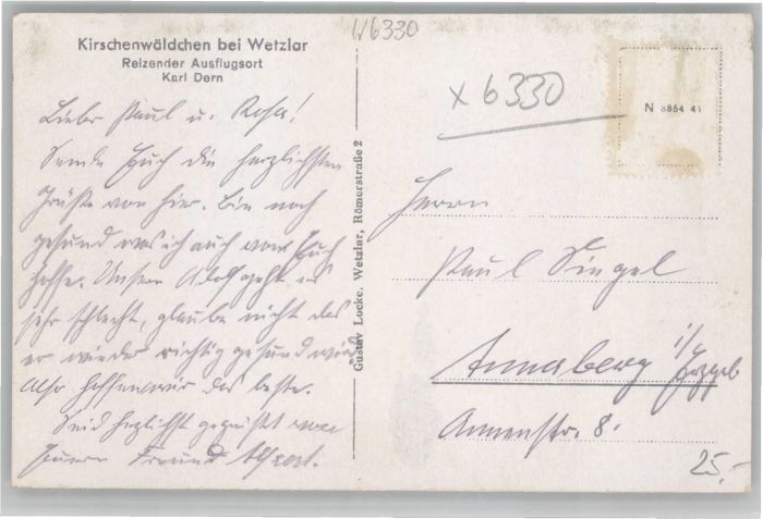 40692700 WETZLAR Lahn Hessen Stoppelberg postalisch gelaufen Alte Ansichtskarte Postkarte alte Postkarte Katcode 11110006532023