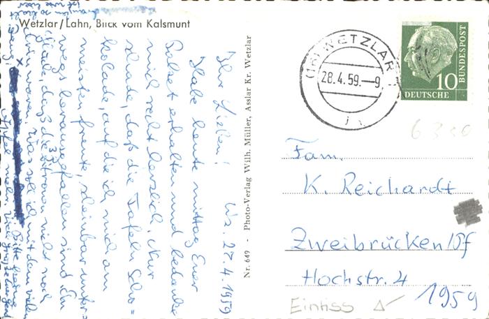 41274238 WETZLAR Lahn Hessen Teilansicht Wetzlar Blick vom Kalsmunt postalisch gelaufen gute Erhaltung Alte Ansichtskarte Postkarte alte Postkarte hz_F Katcode 11110006532023