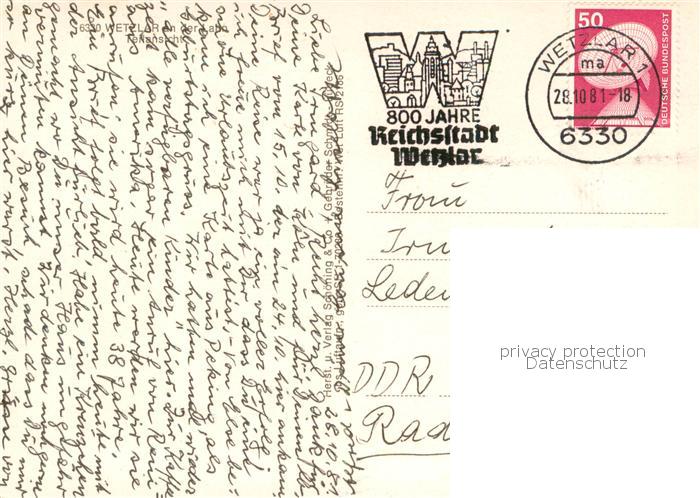 73783811 WETZLAR Lahn Hessen Teilansicht postalisch gelaufen Fliegeraufnahme Erhaltung siehe scans [FriedD77] Fliegeraufnahme alte Postkarte Frie Katcode 11110006532023
