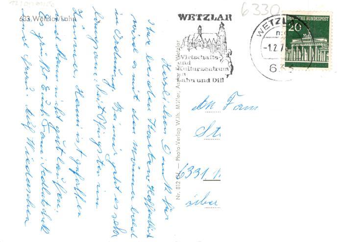 73872187 Wetzlar Lahn Wohngebiet am Sturzkopf Fliegeraufnahmen postalisch gelaufen Erhaltung siehe scans [WerneD78] alte Postkarte Wern Katcode 11110006532023