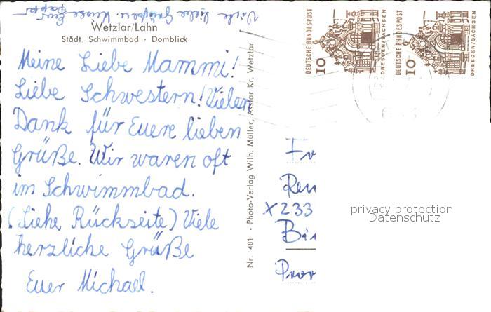 31702694 alte Postkarte Wetzlar Schwimmbad Domblick postalisch gelaufen KatCode: 11110006532023